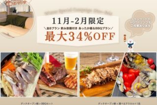 11月30日(土)2月28日(土) - 特典内容:BBQ利用料割引/平日利用時間4時間制
