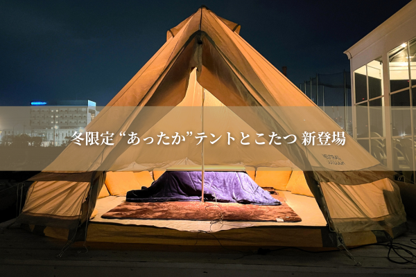 ⛺“あったか”テントとこたつ新登場。薪ストーブやホットドリンク☕も備え、あたたかさを感じられる冬のデイキャンプ空間